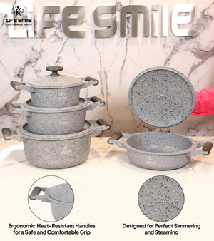 طقم طبخ مطبخ لايف سمايل مكون من 8 قطع مع قاعدة حثية مطلية بالتيتانيوم LIFEP20SF-8-GRAY