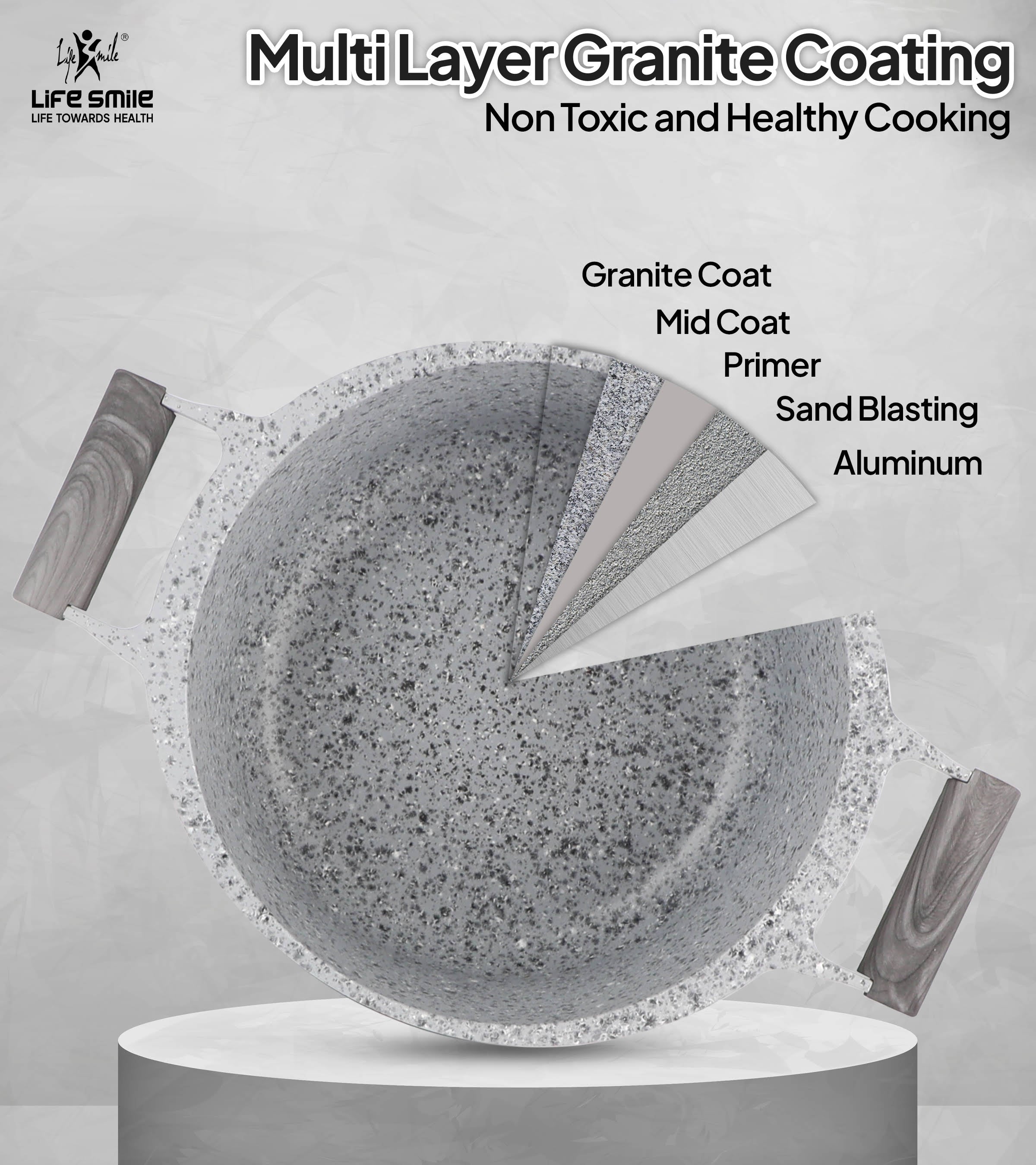Life Smile 8 Pcs Kitchen Cooking Set with Titanium Coating Induction Bottom LIFEP20SF-8-GRAY