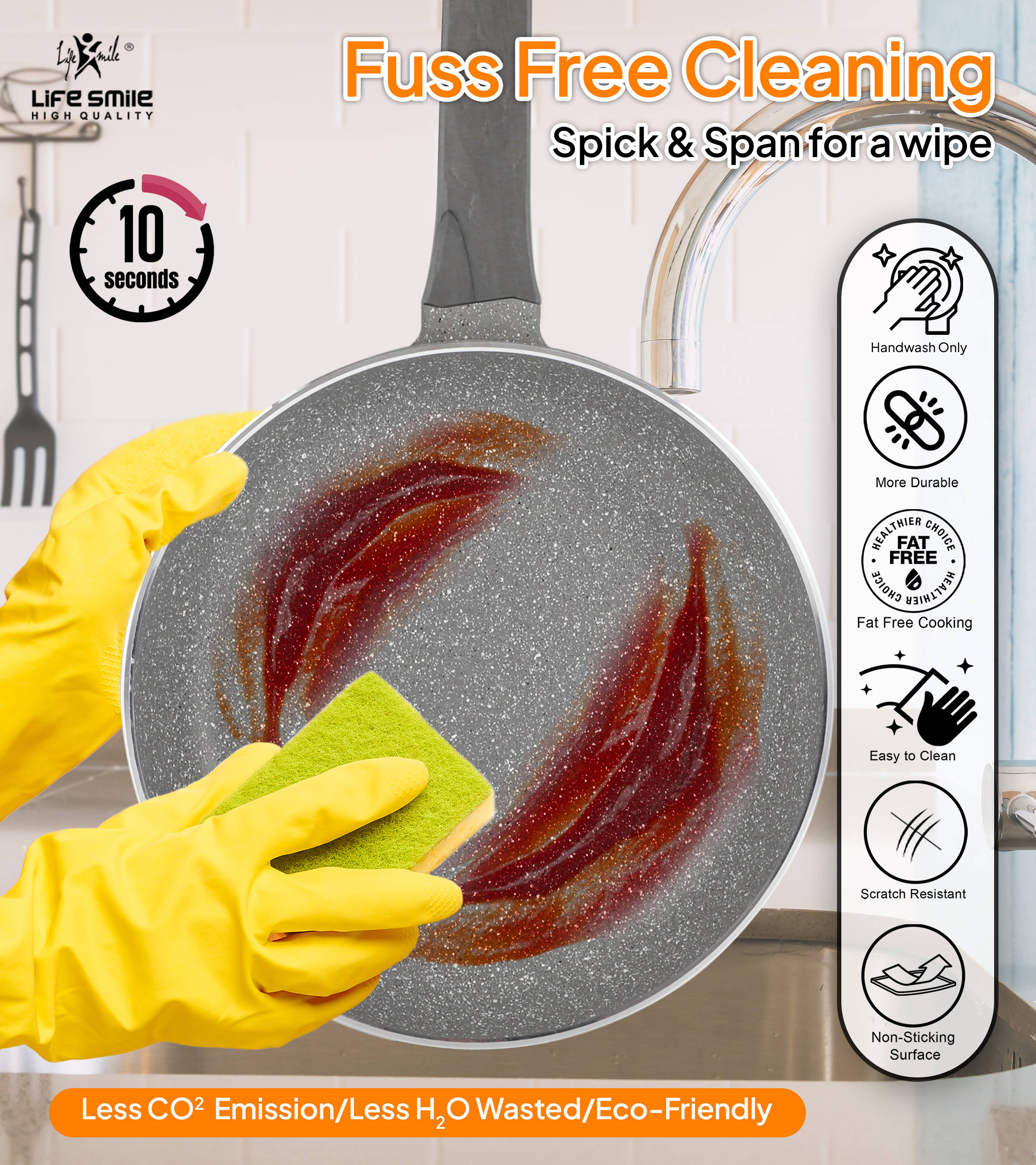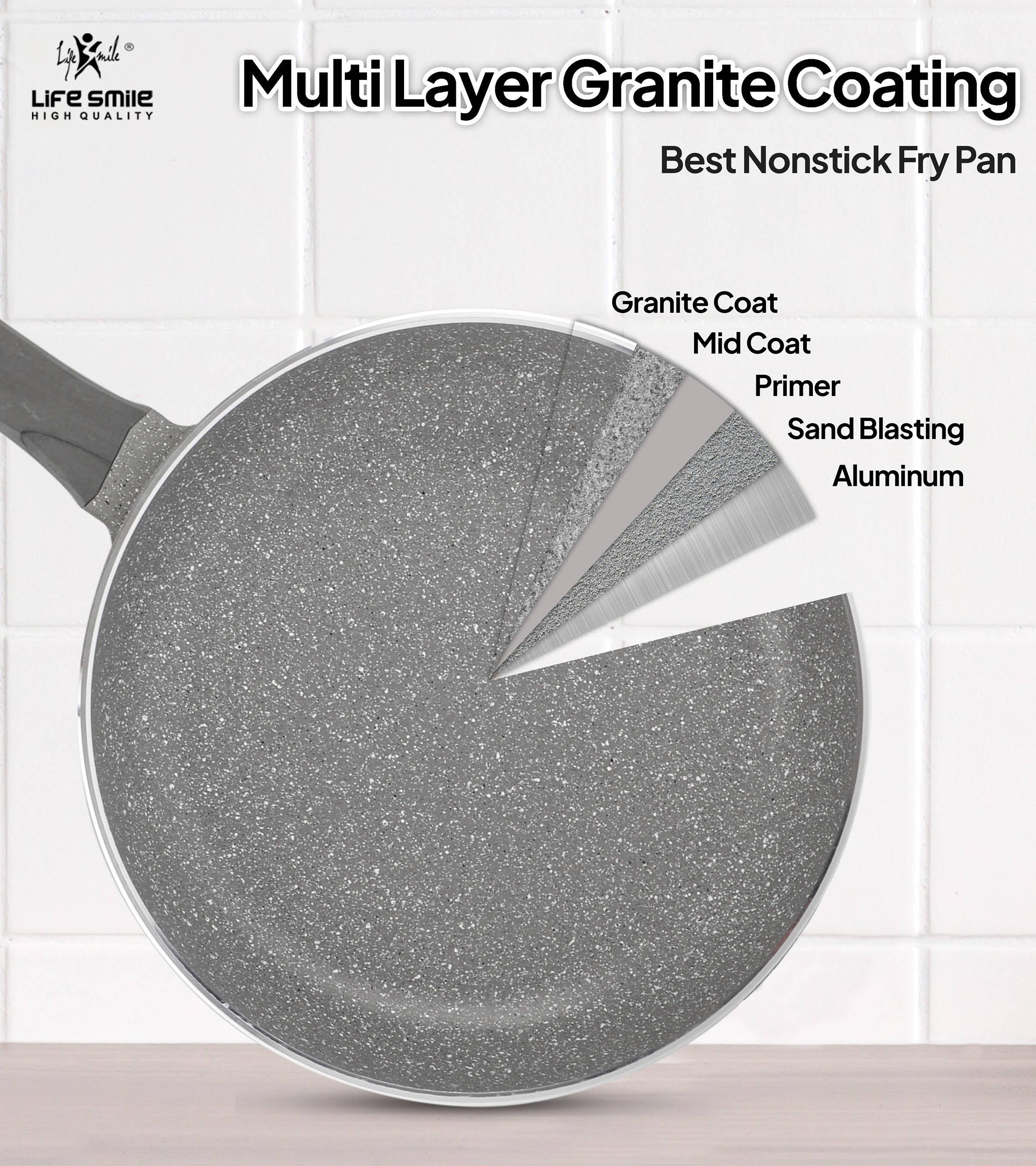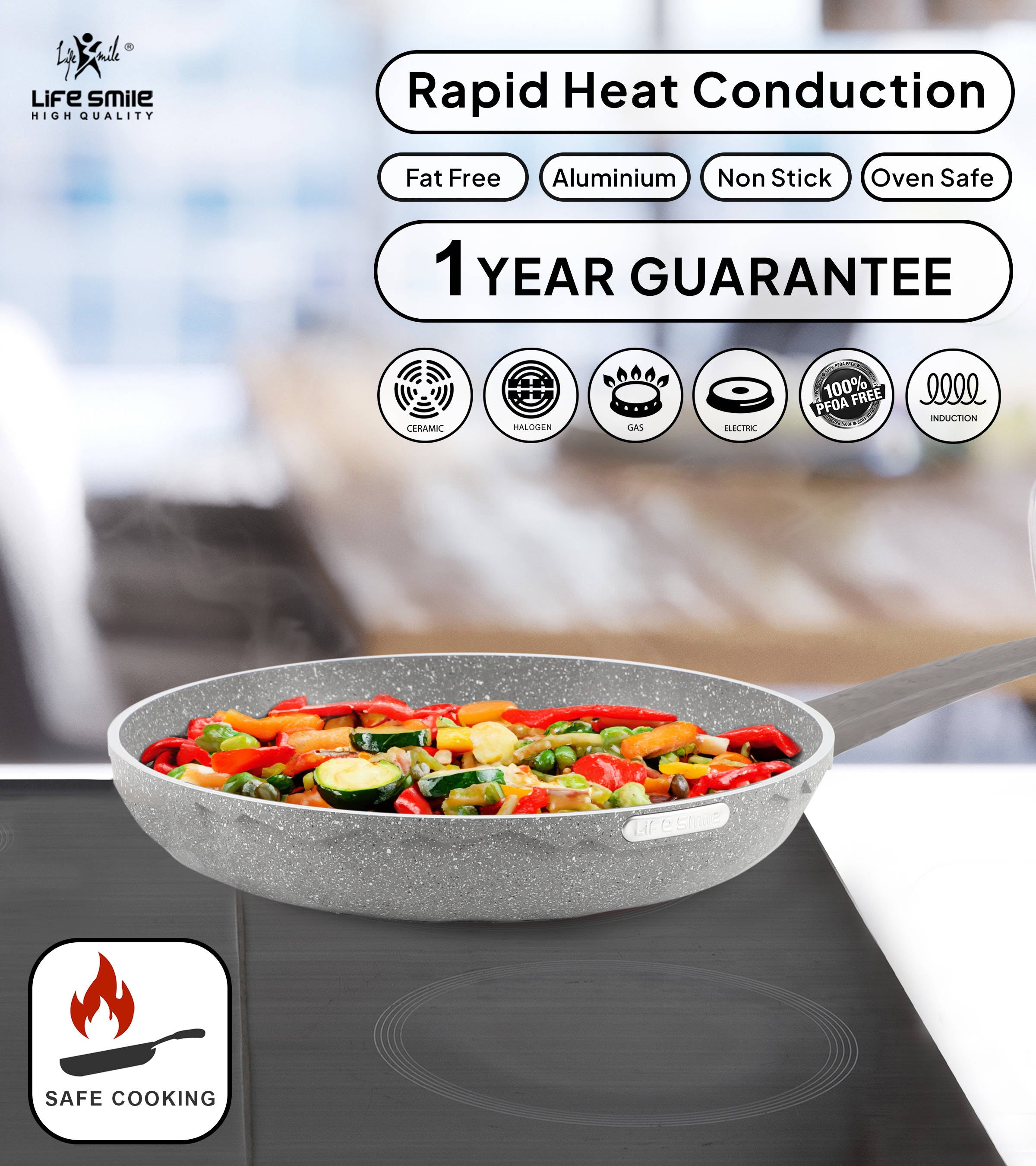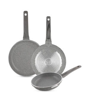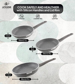Life Smile Fry Pan Set 3 pieces Induction Bottom Granite Coating 7FP7SET-GREY